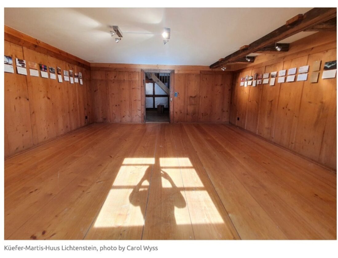 Sumi Perera had curated the original online exhibition 'Wish You/We Were Here/There - The Power of the Postcard' during lockdown. A few months later, co-contributor Carol Wyss took the physical work of the online exhibition to Lichtenstein where she presented it concurrently to her own show at the Küefer Martis Huus.