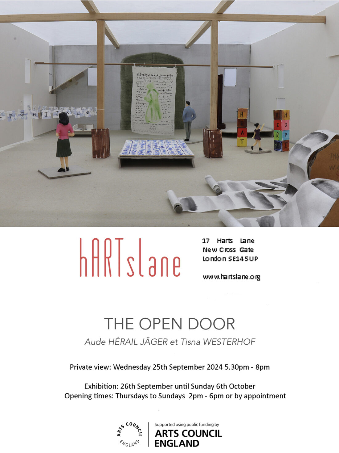 THE OPEN DOOR is a collaborative exhibition and site-specific installation by the artists Aude Hérail Jäger and Tisna Westerhof. Both artists live and work in London. At the beginning of the pandemic in early 2020 they started online conversations about their work - reaching out to each other from their house confinement. Their dialogue has evolved naturally into THE OPEN DOOR.