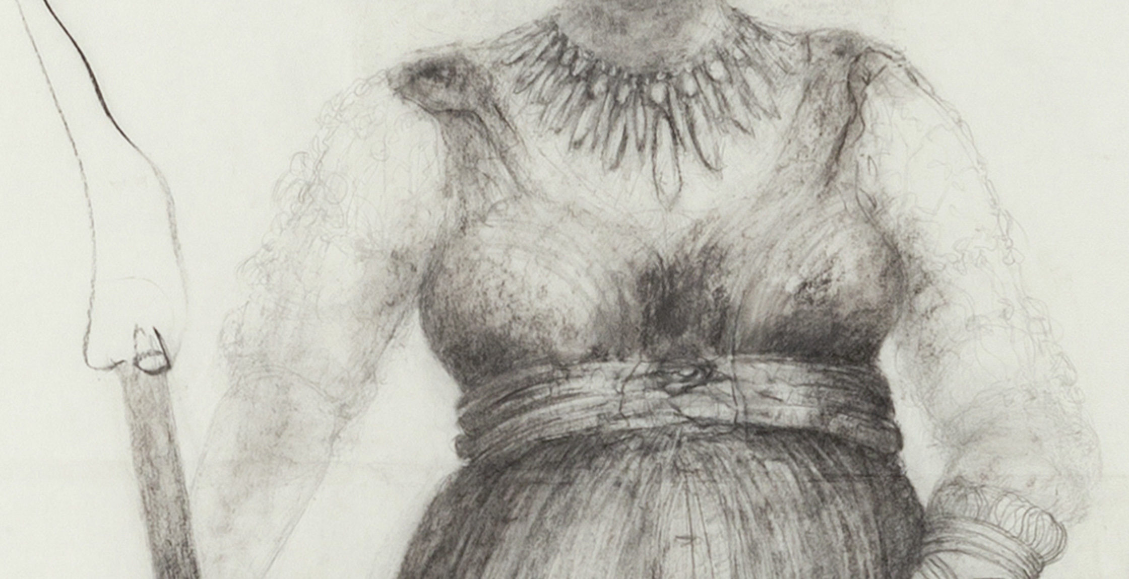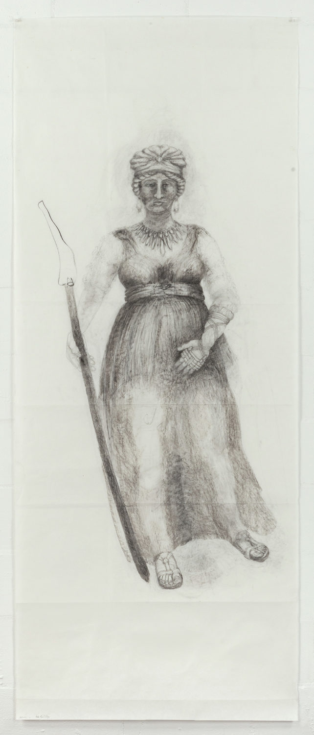 The SENTINELS series claims a lineage of my choice that I trace from Old Masters or ‘Unknown Artists and Craftspeople’ (dixit G. Perry), creating my own pedigree. The work starts with drawing in museums around the world to absorb some of my selected precursors’ brilliance, idiosyncrasies - and at times flaws. I then redirect these drawings to address the preoccupations of my work and find solutions. Back in the studio large figures emerge on long scrolls of paper, each being a composite of elements from the smaller drawings and bridging time, history, geography and ethnicity.